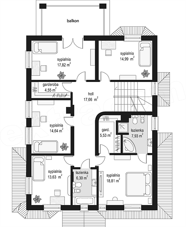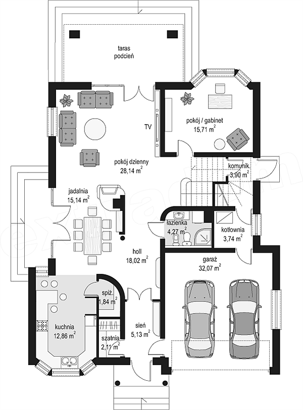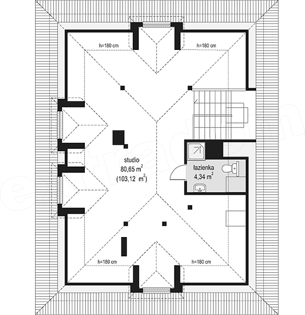 Projekt domu Agat przystosowany jest szczególnie do niewielkich działek z małą możliwą powierzchnią zabudowy. Agat to projekt miejskiej willi o architekturze przywołującej wspomnienie przedwojennych rezydencji z klasycznymi detalami. Wnętrze domu Agat to otwarta przestrzeń dzienna na parterze, oraz pokoje sypialne na piętrze. Domposiada obszerny strych, mogący służyć jako poddasze mieszkalne. Na uwagę zasługuje zwłaszcza osobne wejście gospodarcze, które z uwagi na bliskość schodów może służyć jako osobne wejście do wydzielonego mieszkania na piętrze. Projekt domu Agat dostępny jest także w wersji odbicia lustrzanego.