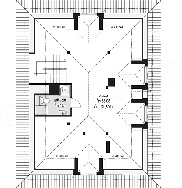 Projekt domu Agat przystosowany jest szczególnie do niewielkich działek z małą możliwą powierzchnią zabudowy. Agat to projekt miejskiej willi o architekturze przywołującej wspomnienie przedwojennych rezydencji z klasycznymi detalami. Wnętrze domu Agat to otwarta przestrzeń dzienna na parterze, oraz pokoje sypialne na piętrze. Domposiada obszerny strych, mogący służyć jako poddasze mieszkalne. Na uwagę zasługuje zwłaszcza osobne wejście gospodarcze, które z uwagi na bliskość schodów może służyć jako osobne wejście do wydzielonego mieszkania na piętrze. Projekt domu Agat dostępny jest także w wersji odbicia lustrzanego.