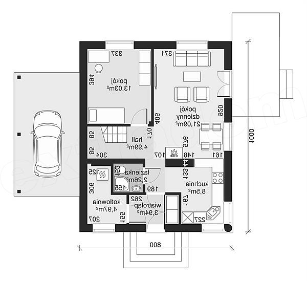 Rzut kondygnacji projektu Dom przy Cyprysowej 34 long - Rzut parteru
