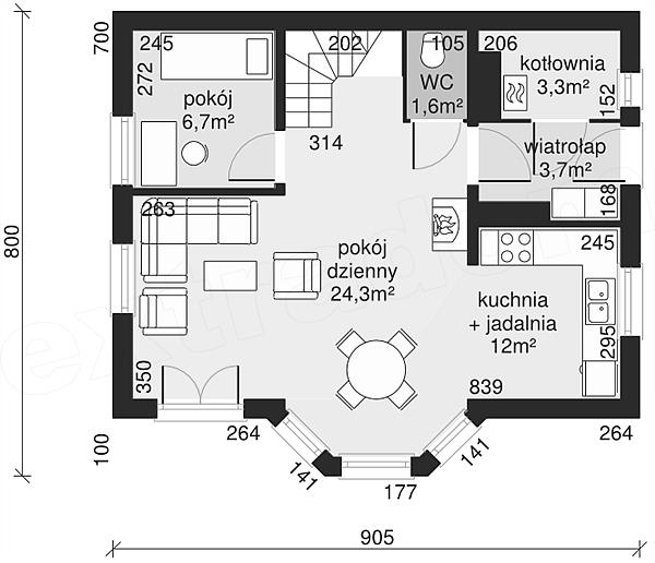 Pow. użytkowa 88 m2 Kubatura 424,02 m3 Wysokość domu 8,34 m