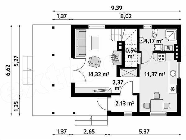 Pow. użytkowa 61,1 m2 Kubatura 271 m3 Wysokość domu 7,44 m