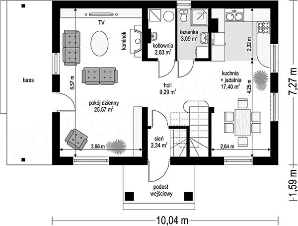Pow. użytkowa 93,3 m2 Kubatura 322 m3 Wysokość domu 7,4 m