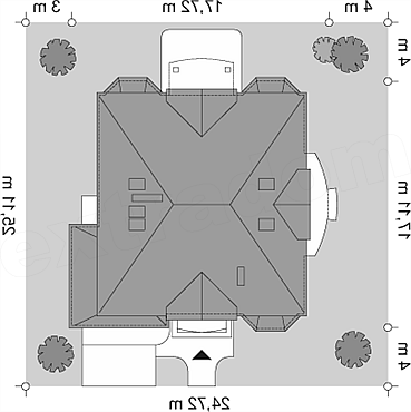 Pow. zabudowy 263,19 m2 Min. szer. działki 24,72 m Kąt nach. dachu 30 st