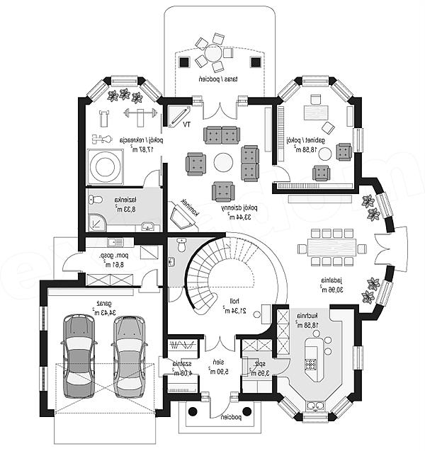 Rzut kondygnacji projektu Sokół - Rzut parteru