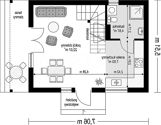 Pow. użytkowa 51,25 m2 Kubatura 151 m3 Wysokość domu 6,85 m
