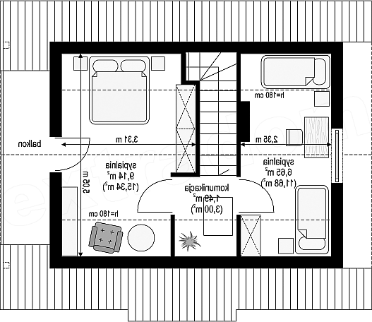 Rzut kondygnacji projektu Sosenka drewniana - Rzut poddasza